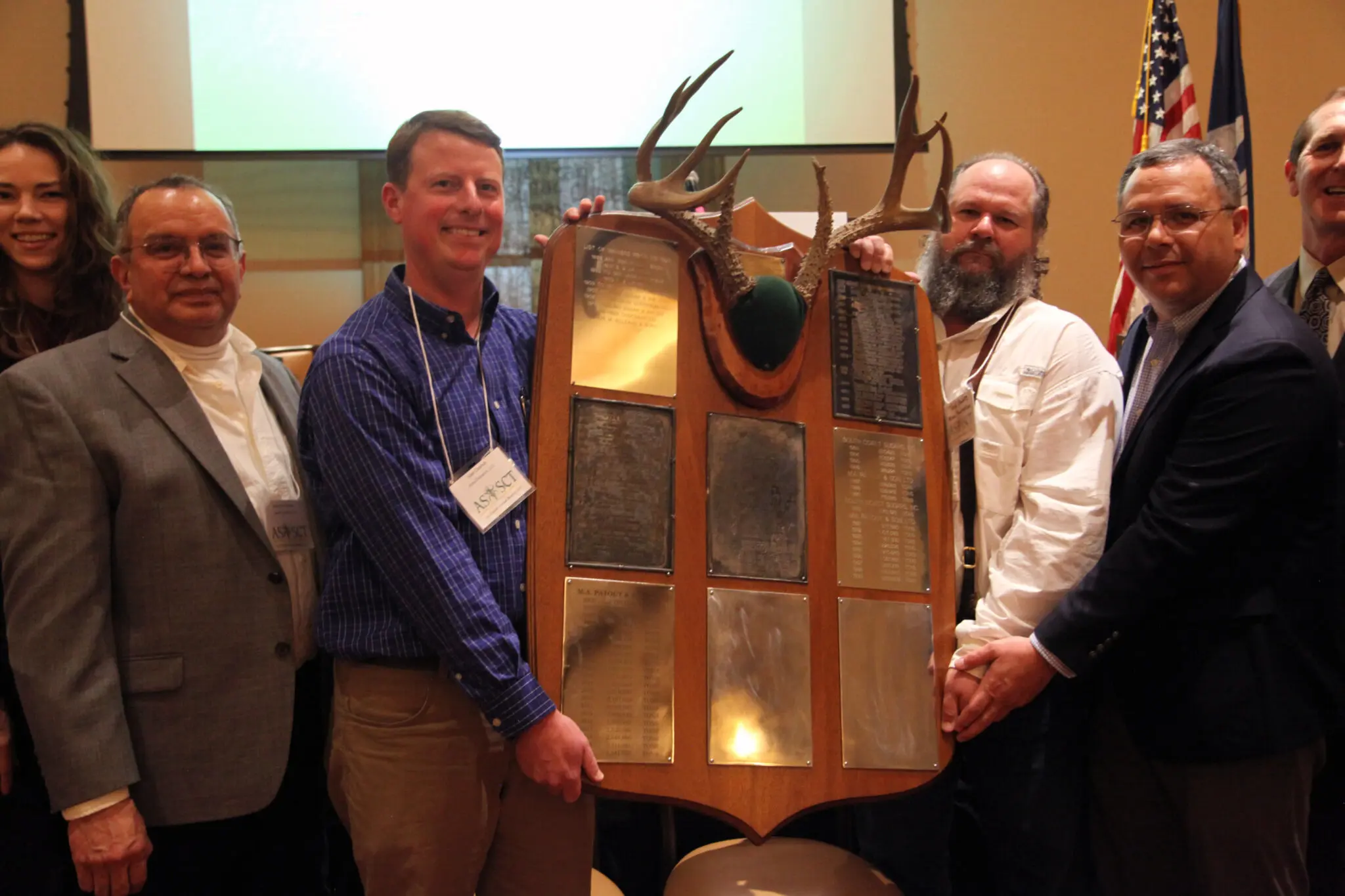 Representatives from Alma Plantation receive the Buckhorn award signifying the mill that ground the most cane in the 2021 harvest year.