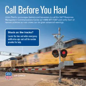 Railroad crossing safety is always an important matter and Union Pacific Railroad is saying “Call before you haul” and “Find the blue and white to save your life” in a series of English and Spanish language public service announcements.