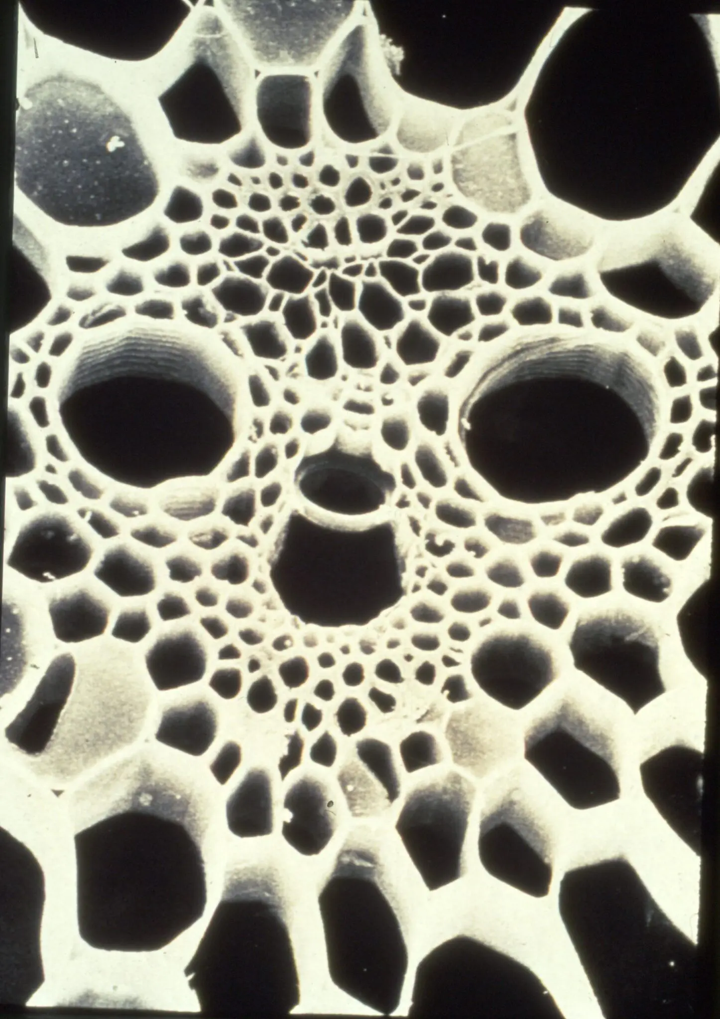 An electron micrograph of a sugarcane vascular bundle taken by K. Damann. The RSD pathogen infects the water conducting vessels (the two big monkey eyes in the bundle) and blocks the plant’s plumbing resulting in stunted growth, particularly in stubble under drought conditions.
